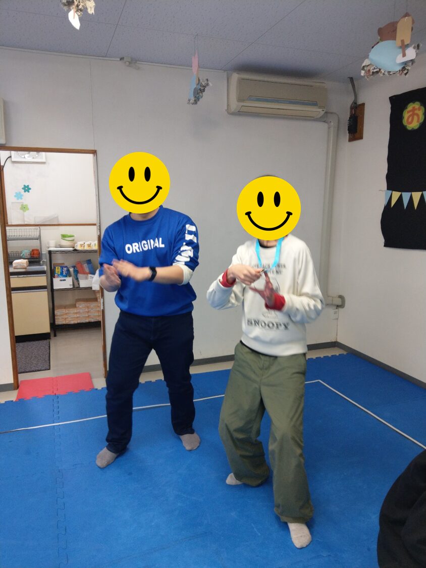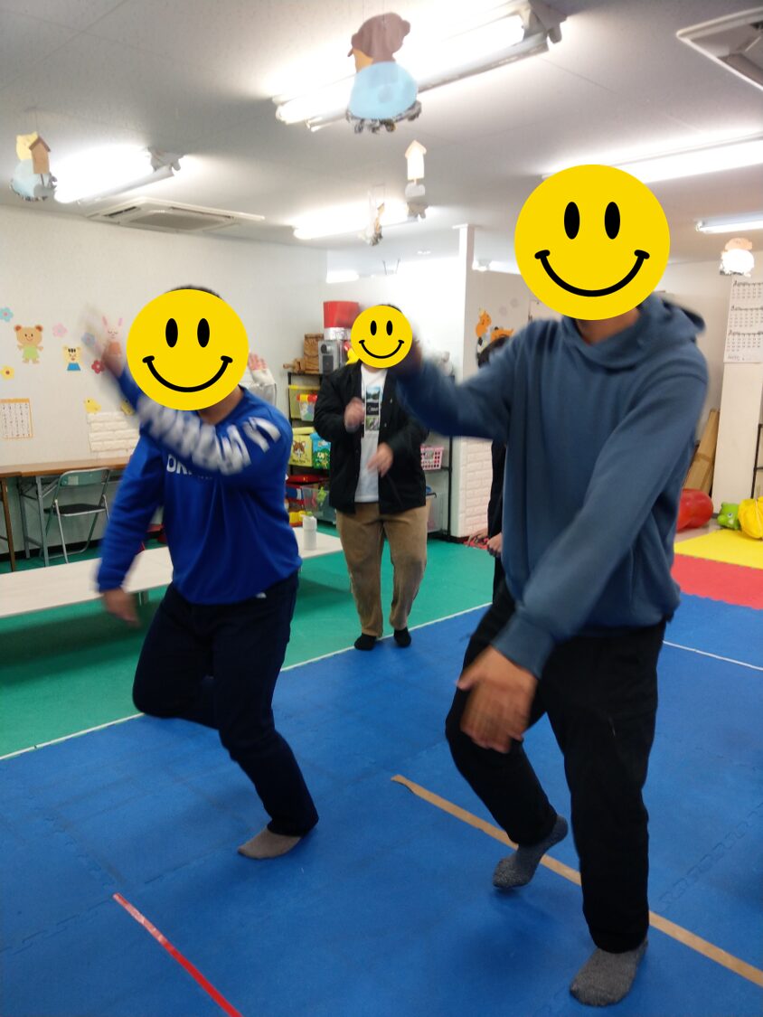 まずは身体を温めがてら、体操!体操は平日子どもたちが楽しんでいる「まじめにんじゃ」。