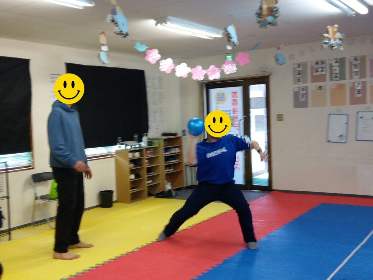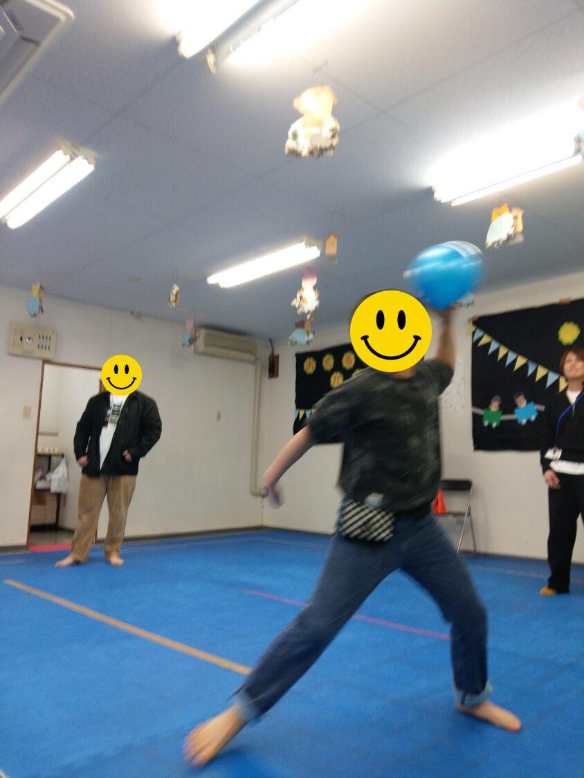 今回の運動遊びで1番盛り上がったのは高校生が小中学生の頃にやっていた「的当てドッチボール」♪