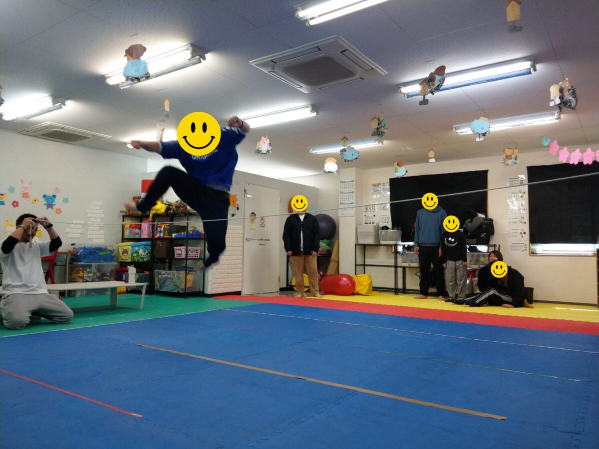 走り高跳びでは縄跳びを使って高跳びに挑戦!!