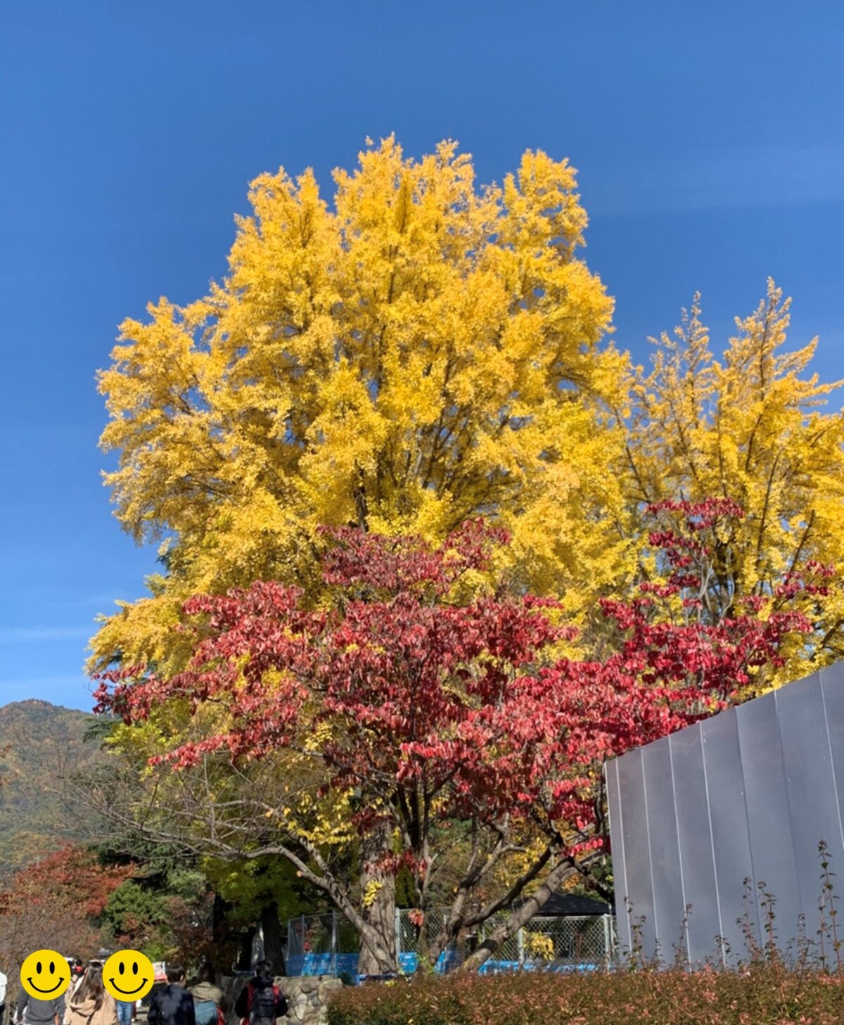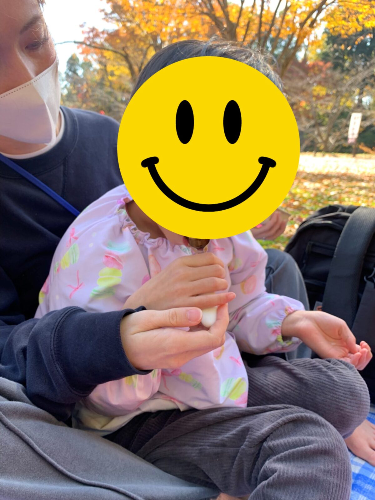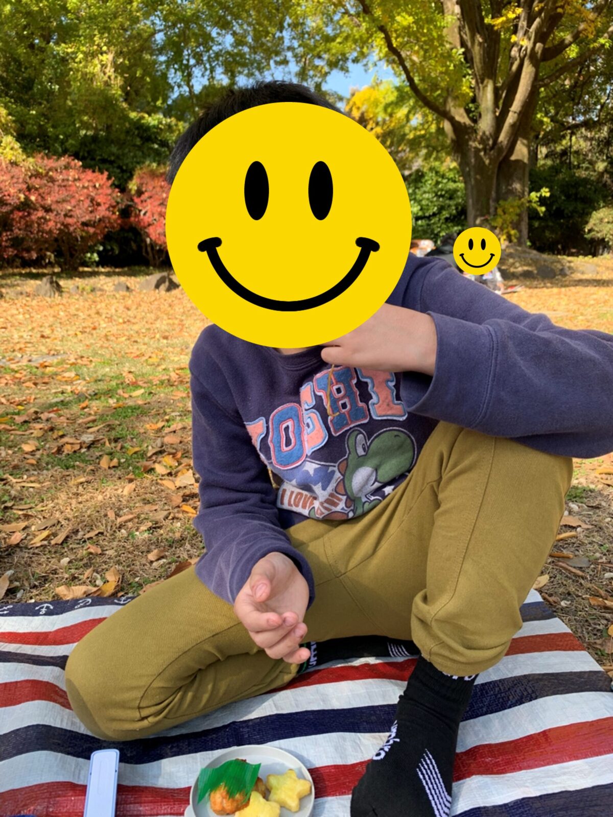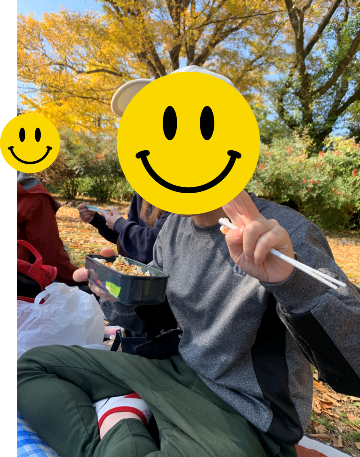 公園では赤や黄色に色づいた紅葉を見ながら美味しくお昼ごはんを食べています🍴
