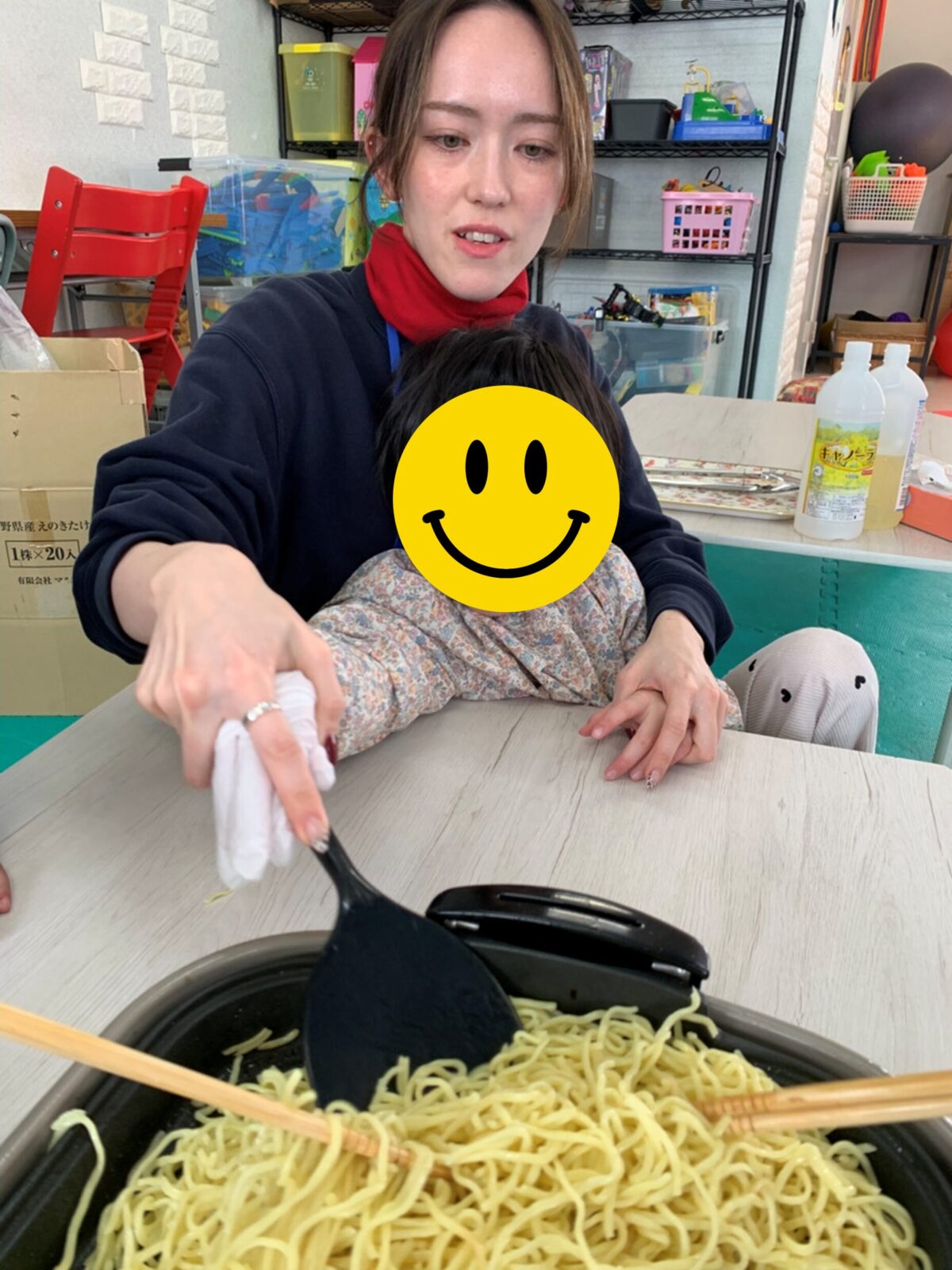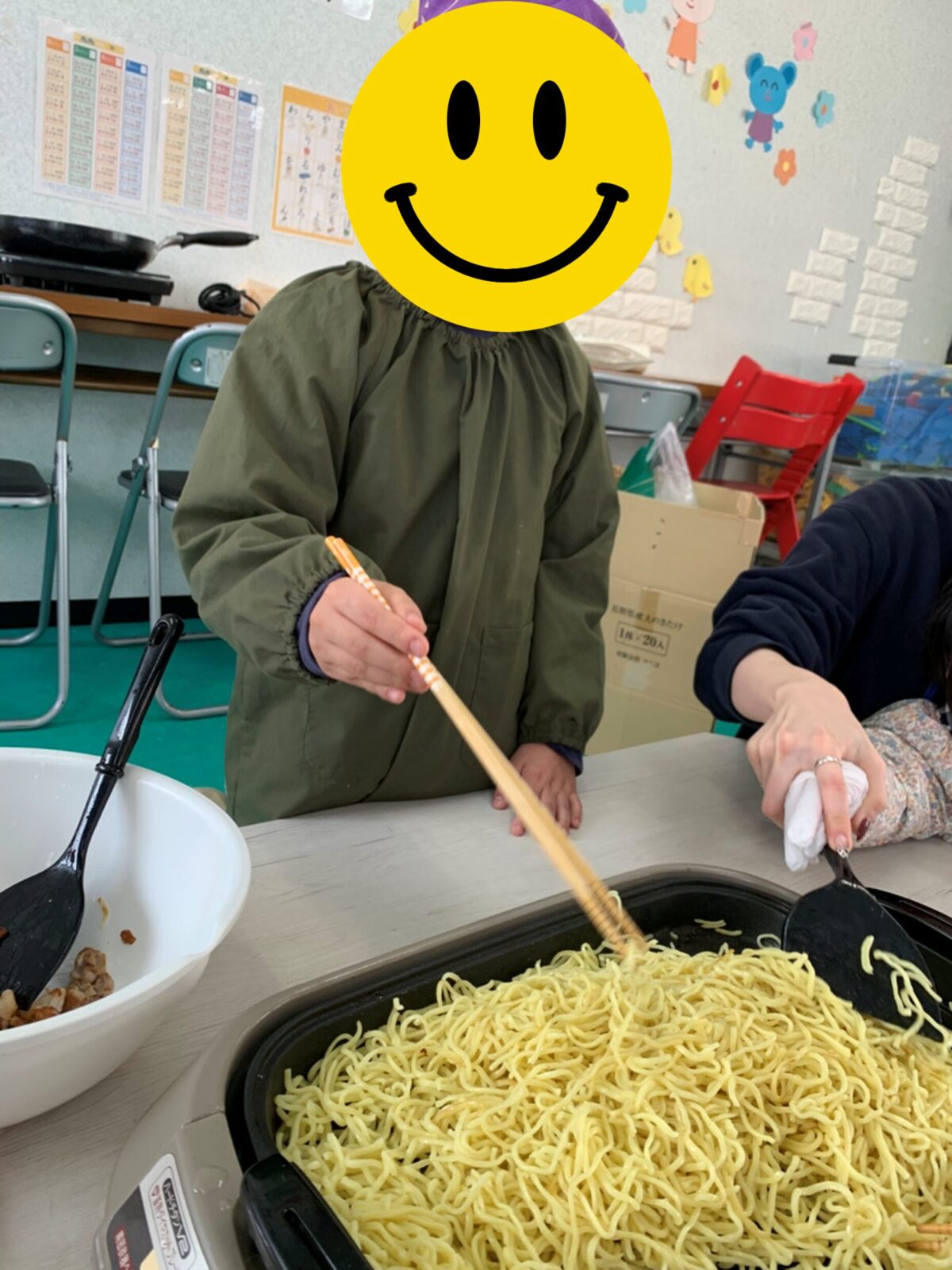 朝からメニューを楽しみにしていた子に「今日何作るんだっけ?」と聞くと「焼きそば😁」とニコニコで答えてくれています✨