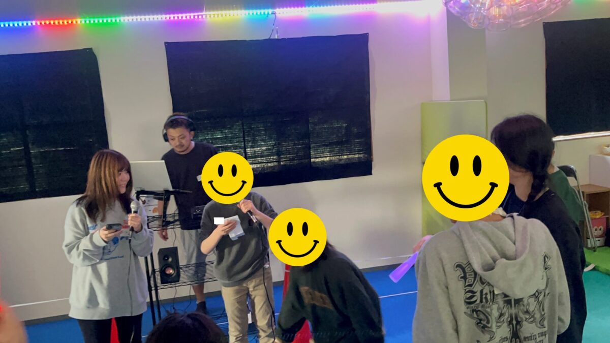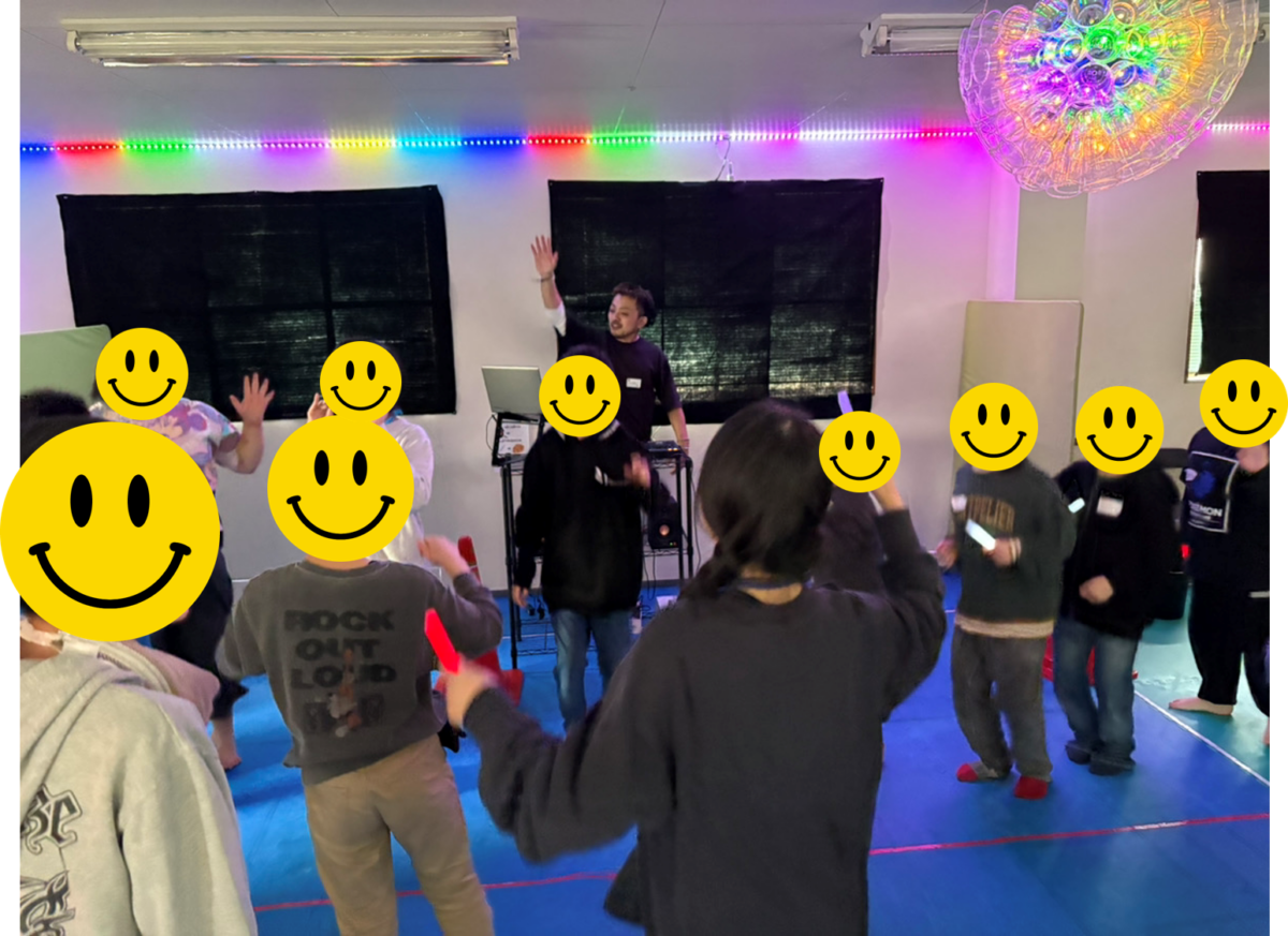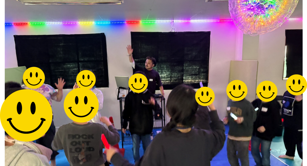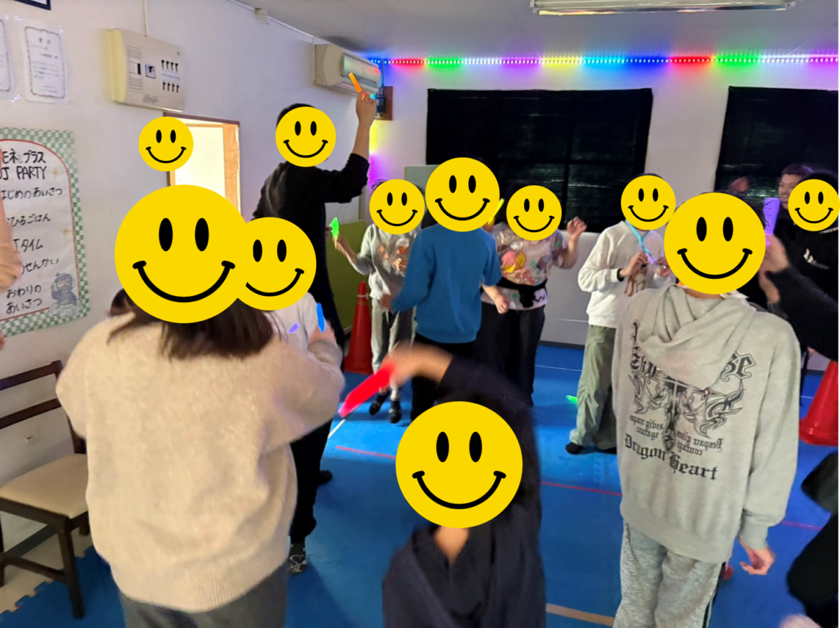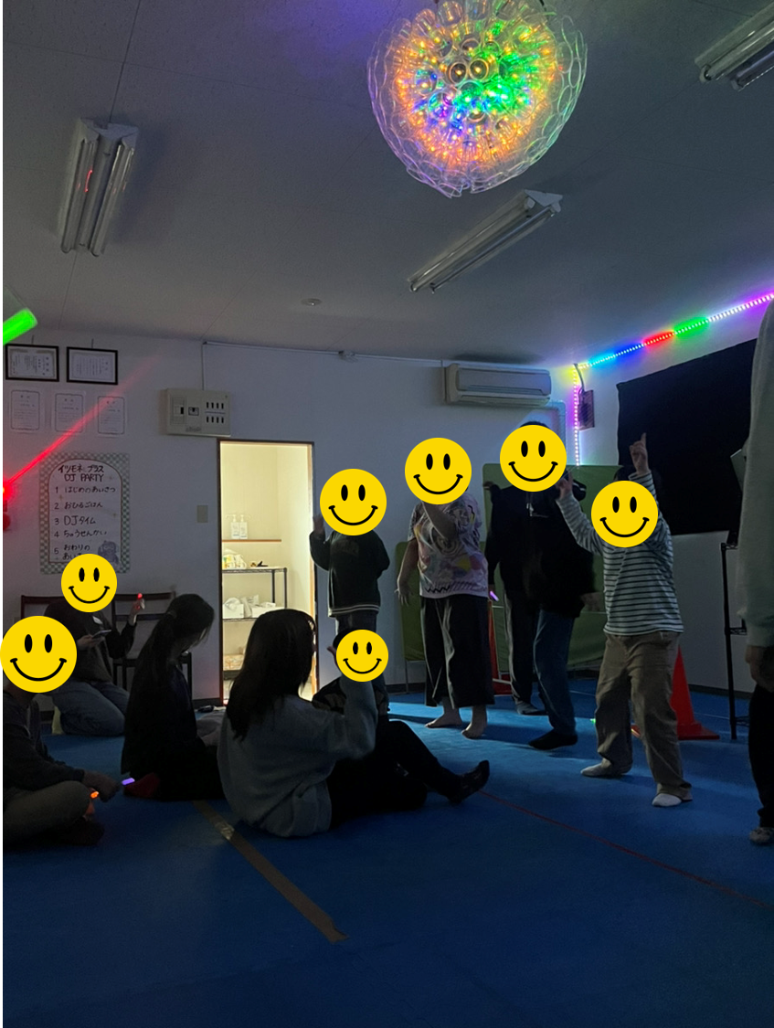 ペンライトを準備してから電気を消すとミラーボールやテープライトの光が綺麗に教室を照らしてくれました✨✨