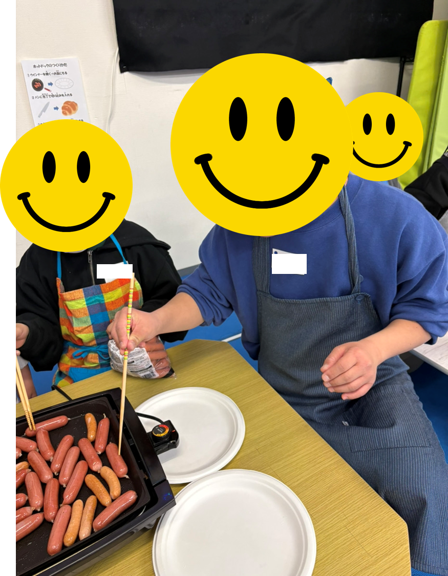 「ホットドック」担当はパンに包丁で切り込みを入れたり、ウインナーを焼いてくれました!
