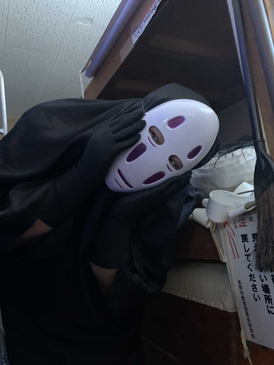 写真は、待機中のお馬さんとカオナシさんです(笑)
