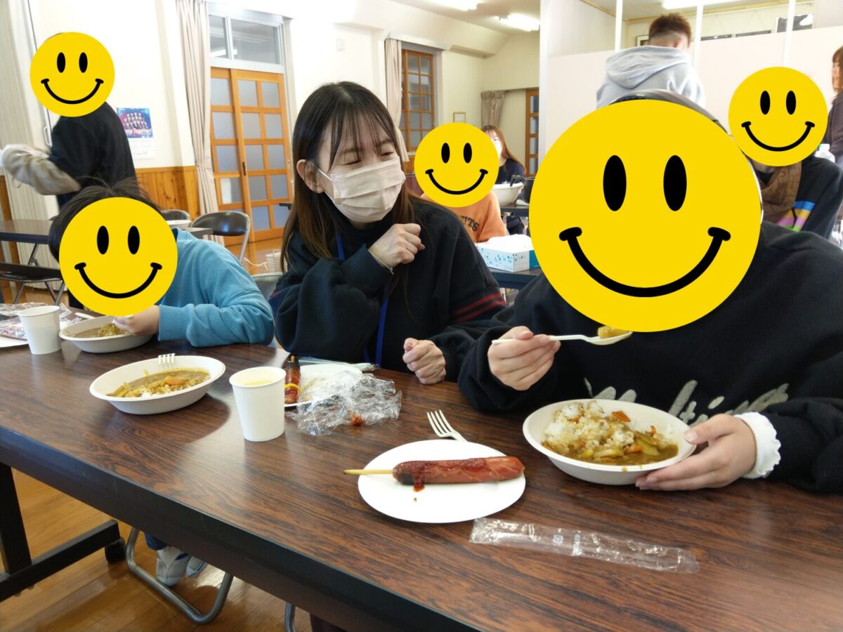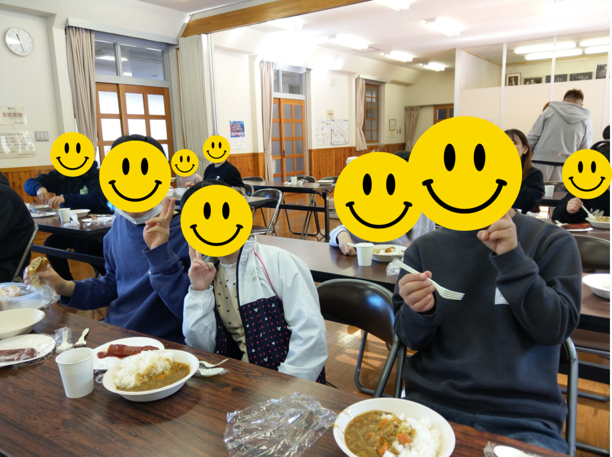 今回は、青木島教室が主催ということで9:00に近隣の体育館へ移動し、約40人分の昼食作り開始です!みんなだいすきカレーとフランクフルト💕スタッフと数名のお友達で頑張って作ります!(お正月休みが抜けずホットプレートを忘れフライパンで焼くことになったり、ガスコンロの火力が強すぎてフランクフルト数本が焦げたことは、2026年最初の隠しごとです、、、笑)
