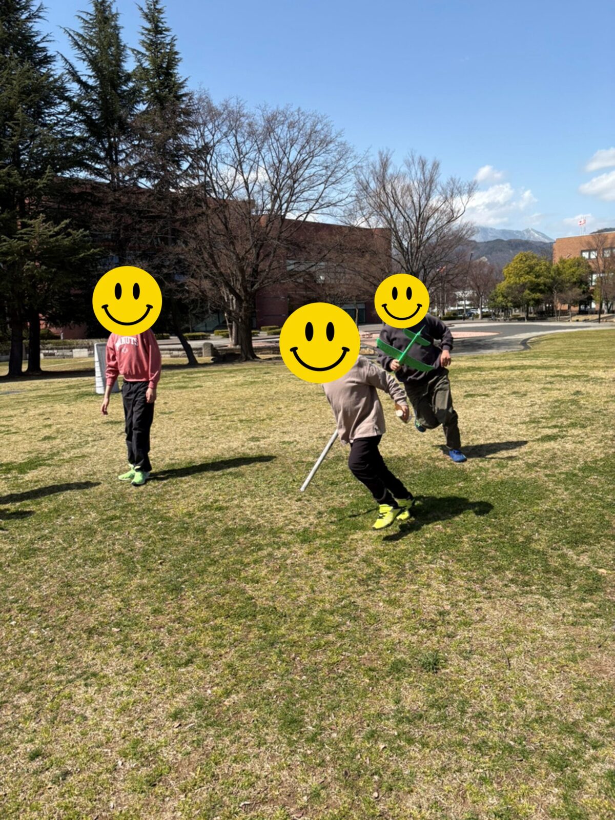 ガストのあとは、若里公園!さっき作ったロケットを持って芝生エリアへ!!