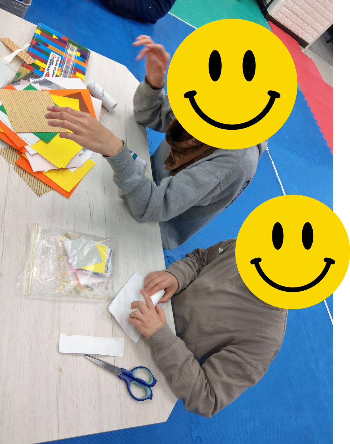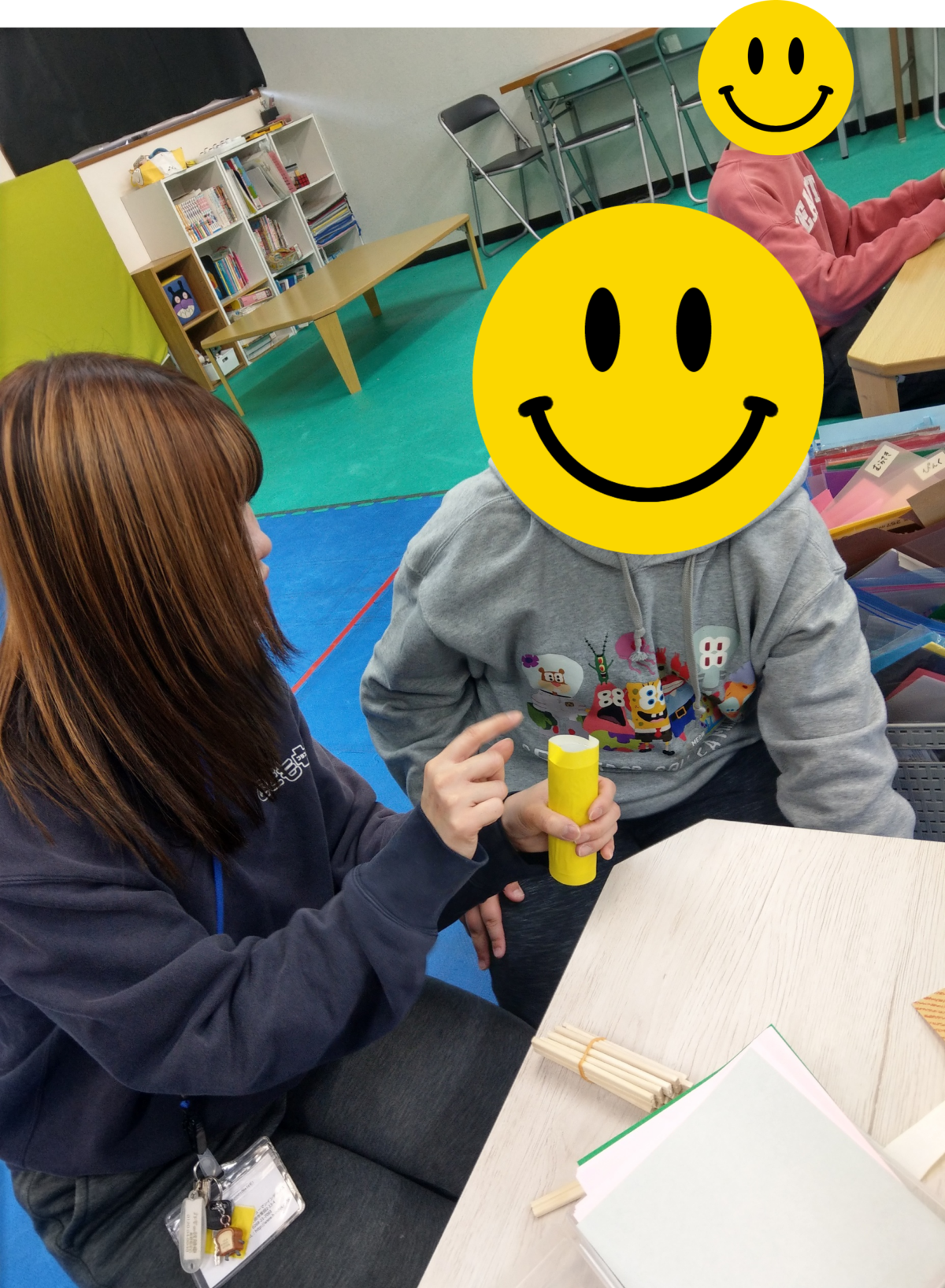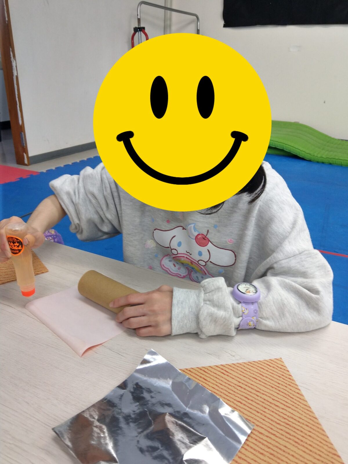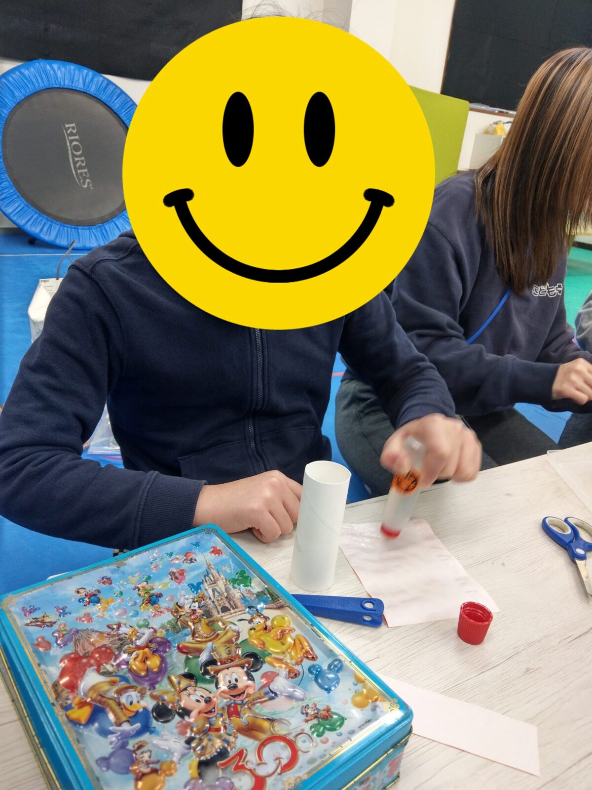 今日の最初の活動は工作です。新聞紙、トイレットペーパーの芯を使ってロケットを作りました🚀